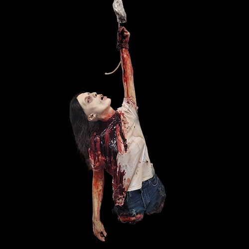 NICHOLE UPPER TORSO HUNG @ HANDS w/ CHAIN & BLOODY w/ INTESTINES.